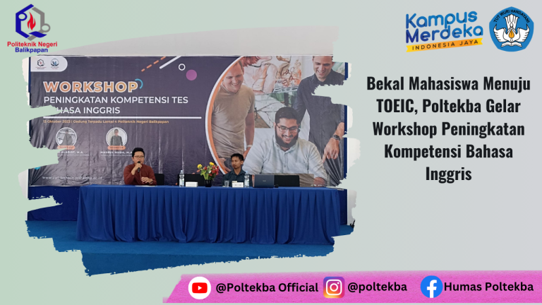 Politeknik Negeri Balikpapan tak henti-hentinya melakukan upgrading terhadap mahasiswa nya. Kali ini menberikan bekal untuk Test of English for International Communication (TOEIC).Ya, kampus vokasi Kota Minyak sukses menggelar workshop peningkatan kompetensi bahasa inggris di Gedung Terpadu Lantai 4, Jumat (13/10/2023).Lebih dari 100 peserta berpartisipasi dalam workshop ini dengan mengundang pemateri asal UIN Maulana Malik Ibrahim Malang yakni Irham Al Adits.Dalam paparannya, mantan alumni Radboud University, Netherland ini menyampaikan materi terkait salah satu alat tes bahasa inggris berupa TOEIC beserta trik nya. Kepala UPT Bahasa Poltekba, Masrul Huda, M.A. mengatakan workshop ini diikuti oleh para mahasiswa baru. Tujuannya, agar mahasiswa familiar dengan tes TOEIC. Karena tentu hal tersebut masih baru bagi mereka. “Tidak semua lulusan SMA, SMK maupun MA mengetahui dan pernah melaksanakan tes ini. Makanya, workshop ini cukup penting sekaligus menjadi bekal bagi mereka,” jelas Masrul Huda M.A.Dalam pelaksanaan ini, ia mengatakan cukup kaget dengan antusias peserta. Tak ayal, pendaftar sudah mencapai ratusan di awal pembukaan pendaftaran.“Workshop ini akan menjadi agenda rutin tahunan. Sehingga ada wawasan baru didapat mahasiswa. Tak hanya soal pemahaman selain TOEFL,” tutupnya