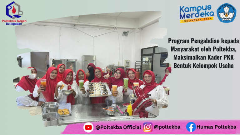 Politeknik Negeri Balikpapan melaksanakan Pengabdian Kepada Masyarakat (PKM). Selama beberapa bulan, sejak Juni hingga Oktober, melakukan penyuluhan, pelatihan hingga pendampingan di Kecamatan Balikpapan Selatan. Program kali ini dipimpin oleh Dr. Tuatul Mahfud, M.Pd. beranggotakan Ria Setyawati, M.Pd, Drs. Bambang Jati Kusuma, MM, Dra. Nawang Retno Dwiningrum, M.Si, Basri, S.Ag., M.Pd. Dr. Tuatul Mahfud, M.Pd mengatakan PKM ini berupa pemberdayaan kader PKK melalui pembentukan kelompok usaha bersama (Kube) bisnis kuliner untuk peningkatan pendapatan keluarga di Kecamatan Balikpapan Selatan. Total ada 20 peserta mengikuti kegiatan ini. Mereka melakukan pelatihan teknis soal pengolahan produk kuliner berupa bakpia borneo, donat singkong, dan thai tea.“Khusus bakpia borneo dan donat singkong merupakan inovasi produk dengan memanfaatkan potensi pertanian singkong yang mnjdi salah satu potensi unggulan di Kaltim,” ujar Dr. Tuatul Mahfud, M.Pd. Ya melalui pengolahan paska panen singkong dalam bentuk bakpia borneo dan donat singkong, diharapkan dapat dijadikan ide bisnis kuliner secara kelompok oleh kader PKK Kecamatan Balikpapan Selatan. “Sehingga dapat menjadi oleh-oleh khas Balikpapan yang dapat dinikmati. Tentunya kami mengoptimalkan peran wanita pada kegiatan ekonomi khususnya kewirausahaan,” harapnya.