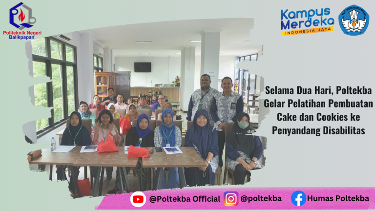 Politeknik Negeri Balikpapan terus gencar dalam melakukan pengabdian kepada masyarakat. Kali ini melakukan pelatihan pembuatan cake dan cookies kepada teman-teman penyandang disabilitas Balikpapan. Selama dua hari, 26-27 Agustus 2023 di Laboratorium Tata Boga, total ada 17 peserta mengikuti pelatihan.Dalam program Pengabdian Kepada Masyarakat (PKM) kali ini dipimpin oleh Farida, S.Pd.,M.Pd. Dengan beranggotakan Henry Winnarko, Abdul Gafur dan Nur Vita Opu.Farida mengatakan pada hari pertama melakukan pemberian materi tentang penghitungan harga jual dan pembukuan, dilanjutkan dengan materi tentang kewirausahaan dan pengemasan. Pun di hari kedua, pelaksanaan pelatihan pembuatan cake yaitu nastar cake dan pembuatan cookies (taiwanese nastar). Setelah pelaksanaan pelatihan dilanjutkan dengan serah terima peralatan seperti, oven tangkring 1 unit, hand mixer 1 unit, manual hand sealer 3 pcs, dan cetakan taiwan nastar 2 pcs, dan bahan pemmbuatan cake dan cookies sebagai modal awal untuk memulai usaha.“Diharapkan setelah pelaksanaan pelatihan teman-teman penyandang disabilitas yang telah mengikuti kegiatan tersebut dapat menerapkan apa yang telah di dapatkan di pelatihan sehingga akan membangkitkan semangat wirausaha,“ ujar Farid Nah, setelah pelaksanaan pelatihan, kata dia akan dilaksanakan pendampingan untuk mendampingi teman-teman penyandang disabilitas untuk mengembangkan kemampuan mereka untuk membuat kue ataupun cookies (kue kering) untuk memastikan kelayakan produk yang dibuat.“Semoga pelatihan ini memberikan manfaat kepada teman-teman disabilitas. Utamanya dalam melakukan wirausaha pembuatan kue dan kue kering,“ harapnya.