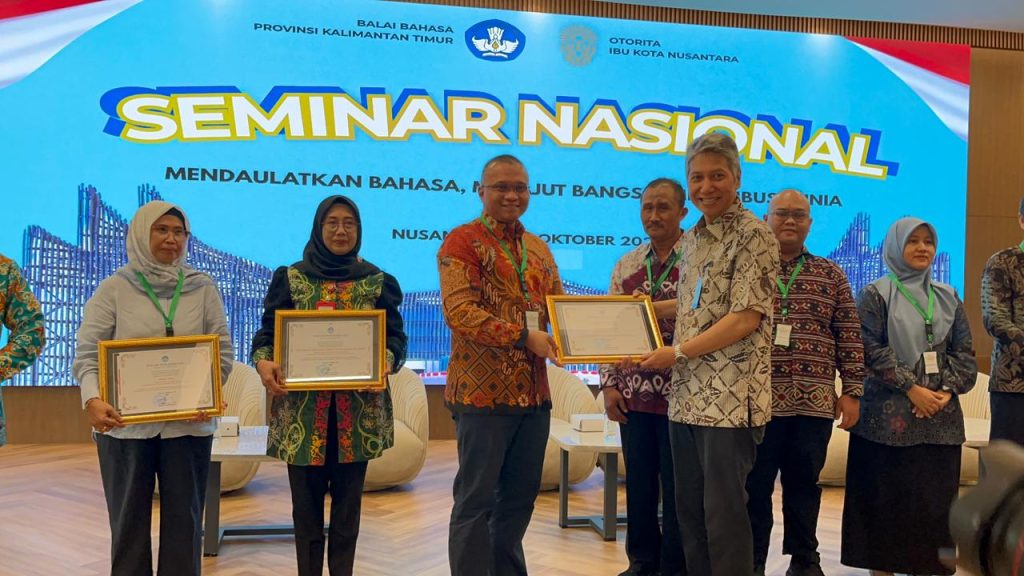 Kabar membanggakan kembali datang dari Politeknik Negeri Balikpapan (Poltekba). Dalam ajang Seminar Nasional Bahasa 2025 yang diselenggarakan oleh Badan Bahasa Republik Indonesia melalui Balai Bahasa Provinsi Kalimantan Timur, bekerja sama dengan Otorita Ibu Kota Nusantara (IKN) pada 24–25 Oktober 2025 di IKN, Poltekba berhasil meraih penghargaan sebagai Institusi Proaktif dalam Penyelenggaraan Program Bahasa Indonesia bagi Penutur Asing (BIPA) di Kalimantan Timur. Penghargaan ini menjadi bentuk pengakuan atas komitmen Poltekba dalam memperkuat diplomasi bahasa dan budaya Indonesia di tingkat global. Melalui program BIPA yang secara konsisten dijalankan, Poltekba turut memperkenalkan bahasa dan budaya Indonesia kepada masyarakat internasional. Penghargaan tersebut diserahkan oleh Badan Bahasa dan Otorita IKN, dan diterima langsung oleh Direktur Politeknik Negeri Balikpapan, Dr. Emil Azmanajaya, S.T., M.T. Program BIPA di Poltekba merupakan bagian dari inisiatif strategis “Kampus Berdampak”, yang menegaskan peran pendidikan vokasi dalam memberikan kontribusi nyata bagi masyarakat, bangsa, dan dunia. Melalui kegiatan pengajaran bahasa Indonesia bagi penutur asing, Poltekba tidak hanya meningkatkan kompetensi kebahasaan para pemelajar internasional, tetapi juga memperkuat jalinan diplomasi kultural yang mendukung semangat internasionalisasi kampus. Saat ini, Kepala UPA Bahasa Poltekba, Abdul Gafur, terus mengembangkan aktivitas pengajaran BIPA. Ia tercatat masih aktif mengajar pemelajar dari Prancis dan Rusia, serta sedang mempersiapkan kelas baru bagi pemelajar dari Pakistan. “Kami berkomitmen untuk menjadikan Poltekba sebagai pusat pembelajaran bahasa dan budaya Indonesia di wilayah Kalimantan Timur. Melalui program BIPA, kami tidak hanya mengajarkan bahasa, tetapi juga memperkenalkan nilai-nilai luhur bangsa kepada dunia,” ujar Abdul Gafur. Sementara itu, Direktur Politeknik Negeri Balikpapan, Dr. Emil Azmanajaya, S.T., M.T., menyampaikan rasa syukur dan apresiasinya atas penghargaan tersebut. “Penghargaan ini merupakan bukti nyata bahwa Poltekba tidak hanya fokus pada pendidikan vokasi, tetapi juga berkontribusi dalam diplomasi kebahasaan dan kebudayaan Indonesia. Ke depan, kami akan terus memperluas jejaring internasional dan menghadirkan program yang berdampak, selaras dengan semangat Kampus Berdampak yang menjadi arah kebijakan Poltekba,” ungkapnya. Penghargaan ini diharapkan menjadi motivasi bagi Politeknik Negeri Balikpapan untuk terus berperan aktif dalam diplomasi bahasa dan budaya Indonesia, serta memperkuat posisinya sebagai institusi vokasi yang berdaya saing global dan berwawasan internasional. Melalui berbagai program unggulan yang selaras dengan visi Kampus Berdampak, Poltekba berkomitmen menghadirkan kontribusi nyata bagi pembangunan sumber daya manusia, memperluas jejaring kerja sama internasional, dan mengharumkan nama Indonesia di kancah dunia.