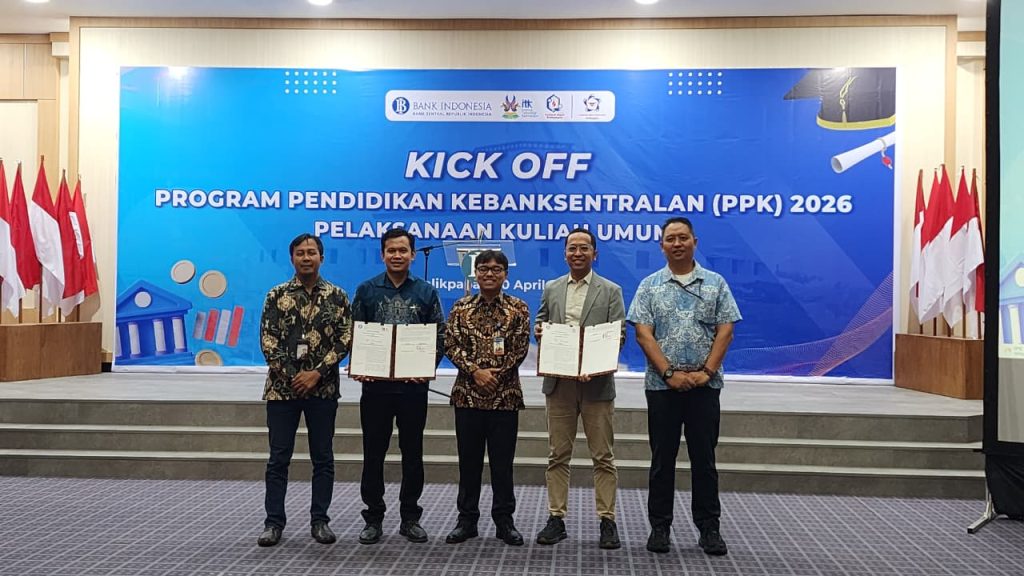 Politeknik Negeri Balikpapan (Poltekba) turut berpartisipasi dalam kegiatan Kick Off dan Kuliah Umum Program Pendidikan Kebanksentralan (PPK) 2026 yang diselenggarakan oleh Bank Indonesia melalui Kantor Perwakilan Balikpapan, pada Jumat (10/4/2026). Kegiatan yang berlangsung di Ruang Beruang Madu, Kantor Perwakilan Bank Indonesia Balikpapan ini menjadi langkah awal pelaksanaan program PPK tahun 2026, yang bertujuan meningkatkan pemahaman mahasiswa terhadap peran dan kebijakan bank sentral dalam perekonomian nasional. Dalam kegiatan tersebut, Poltekba mengirimkan perwakilan yang terdiri dari dosen, akademisi, serta puluhan mahasiswa untuk mengikuti rangkaian acara, mulai dari sesi pembukaan hingga kuliah umum. Kehadiran ini menjadi wujud komitmen Poltekba dalam mendukung penguatan literasi kebanksentralan di kalangan civitas akademika. Melalui kegiatan ini, mahasiswa Poltekba mendapatkan wawasan langsung mengenai tugas dan fungsi Bank Indonesia, termasuk kebijakan moneter, sistem pembayaran, serta stabilitas sistem keuangan. Selain itu, kegiatan ini juga membuka peluang kolaborasi lebih lanjut antara Poltekba dan Bank Indonesia dalam bidang pendidikan dan pengembangan sumber daya manusia. Partisipasi aktif Poltekba dalam program ini diharapkan dapat mencetak generasi muda yang tidak hanya unggul secara akademik, tetapi juga memiliki pemahaman yang kuat terhadap dinamika ekonomi dan kebijakan kebanksentralan di Indonesia.