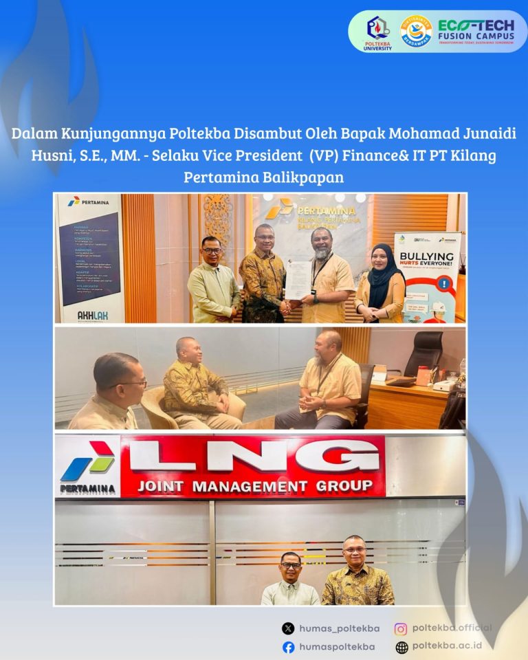 Balikpapan – Politeknik Negeri Balikpapan (Poltekba) terus memperkuat sinergi dengan dunia industri sebagai bagian dari komitmen menghadirkan pendidikan vokasi yang relevan dan berdaya saing. Salah satu langkah strategis tersebut diwujudkan melalui kerja sama dengan PT Kilang Pertamina Balikpapan (KPB) yang kini bergabung dalam jajaran Dewan Penyantun Poltekba.