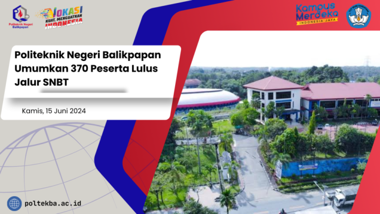 Politeknik Negeri Balikpapan telah mengumumkan 370 peserta Seleksi Nasional Penerimaan Mahasiswa Baru (SNPMB) Jalur Seleksi Nasional Berdasarkan Tes (SNBT). Hasil ini diumumkan Kamis (13/6/2024) pukul 16.00 WIB. Staf Tim Seleksi Penerima Mahasiswa Baru (SPMB) Poltekba Novianna mengatakan para peserta yang dinyatakan lulus selanjutnya akan mengikuti tes kesehatan dan wawancara. Hanya saja, ada beberapa program studi yang tidak melakukan tes wawancara yakni Prodi Tata Boga, Pengelolaan Perhotelan, Teknik Sipil serta Teknologi Rekayasa Konstruksi Jalan dan Jembatan.