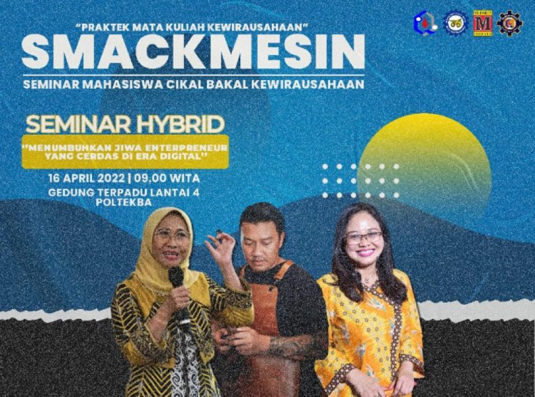 Polikteknik Negeri Balikpapan melalui Jurusan Teknik Mesin menggelar seminar kewirausahaan, Sabtu (16/4/2022) besok. Mengangkat tema menumbuhkan jiwa entrepeneur yang cerdas di era digital, mengundang pemateri Wakil Ketua Komisi X DPR RI, Dr. Ir. Hetifah Sjaifudian. MPP dan Founder Hitam Manis Denny Cristiawan.