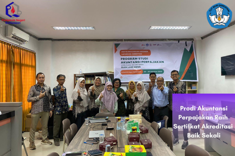 Program Studi (Prodi) Akuntansi Perpajakan sukses meraih sertifikat akreditasi baik sekali. Hal ini tertuang dalam keputusan LAMEMBA No.784/DE/A.5/AR.10/X/2023. Dalam isi surat tersebut menyatakan bahwa Program Studi Akuntansi Perpajakan Pada Program Sarjana Terapan Politeknik Negeri Balikpapan, Kota Balikpapan Terakreditasi dengan peringkat: Baik Sekali. Sertifikat Akreditasi ini berlaku 5 (lima) tahun sejak tanggal 13 Oktober 2023 sampai dengan 13 Oktober 2028.