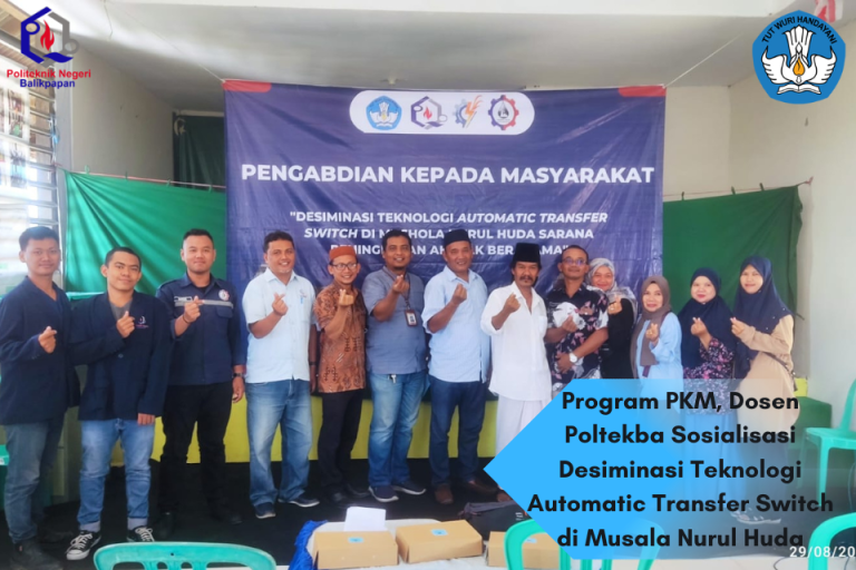 Bersama Pusat Penelitian dan Pengabdian kepada Masyarakat (P3M) Poltekba dengan anggaran dari DIPA Poltekba 2023, sejumlah dosen Poltekba dan mahasiswa mewujudkan dan mengimplementasikan pengabdian masyarakat dalam bidang pengendalian energi listrik cadangan pada Musala Nurul Huda di Kota Balikpapan.